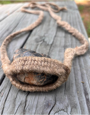 A replica of a common style of sling in antiquity. In modern trials, they are accurate at around 400 yards. That is beyond the effective distance of ancient javelin throwers or archers. Slings were made of braided ropes and could be wrapped around a hand or waist when not being used. The slings could hurl stones, which on average weighed half a pound, at speeds in excess of 120 miles per hour. Israel is very rocky, so slingers did not worry about running out of ammo. Photo by John Buckner
