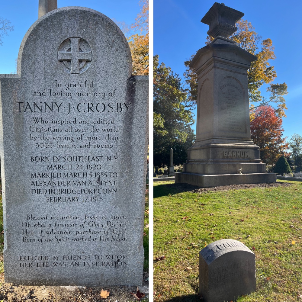 It was a sunny, crisp fall day when Tammy and I visited the Mountain Grove Cemetery in Bridgeport, Connecticut. Our trip to the historic cemetery was purposeful – to visit the grave of the prolific songwriter Fanny Crosby.